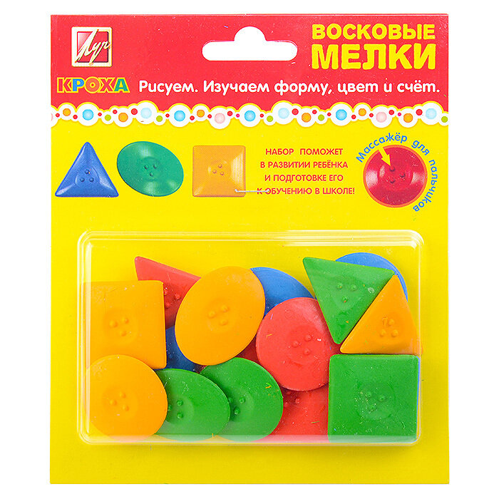 Мелки «Геометрические фигуры» подойдут для рисования и послужат отличным дидактическим материалом для обучения малышей основам геометрии.Выпускаются в форме основных геометрических фигур (треугольника, квадрата, круга, овала). Внутри каждого мелка имеются маленькие массажеры для детских пальчиков, способствующие развитию мелкой моторики. Рисуют по бумаге, картону, дереву, камням и другим поверхностям. Легко скользят по поверхности, оставляя яркие линии и штрихи.
