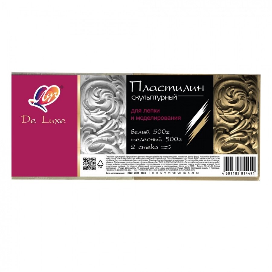 Пластилин скульптурный Люкс 2 цвета белый телесный 2 стека 1000 г ЛУЧ