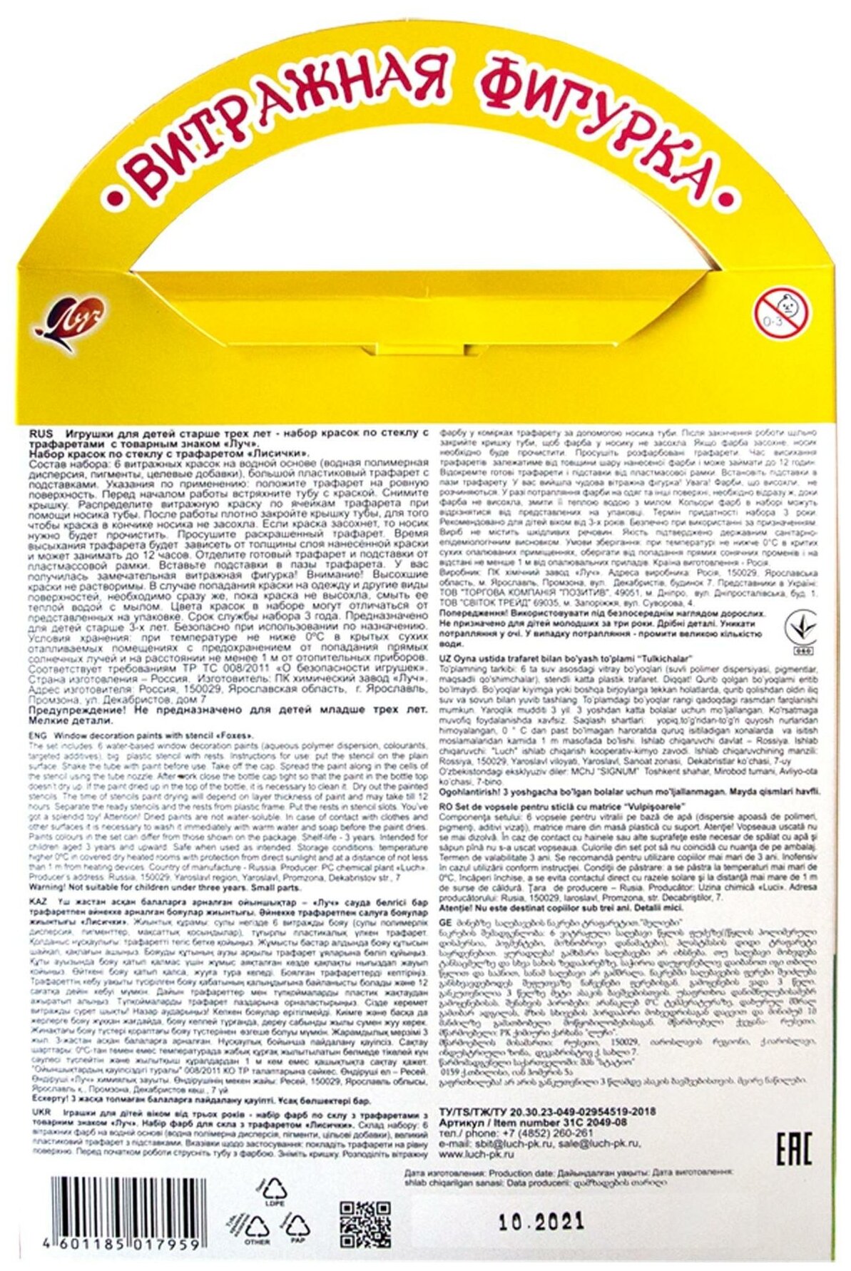 Набор красок по стеклу с трафараретом Лисички 6 цветов ЛУЧ