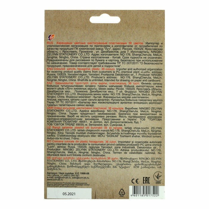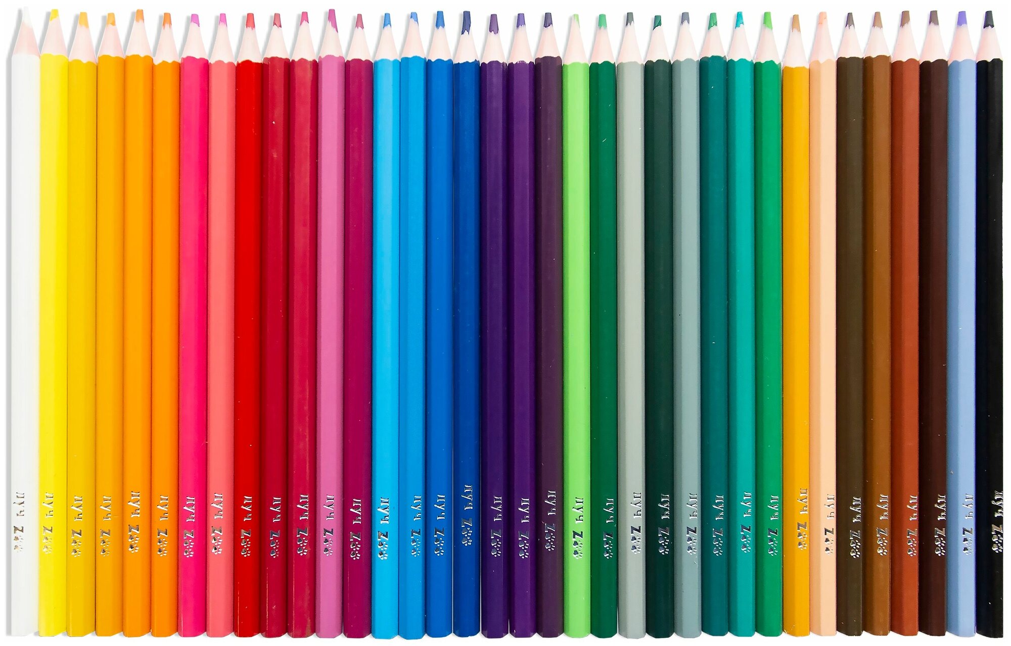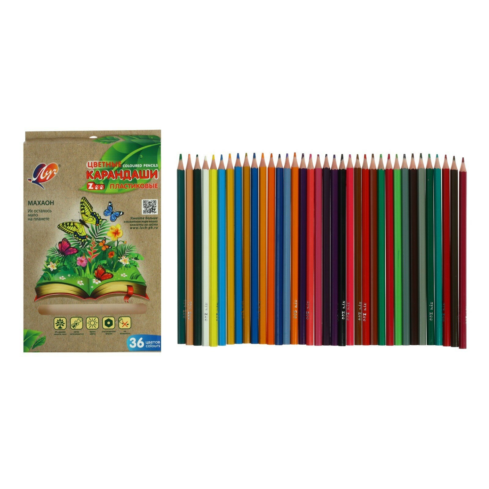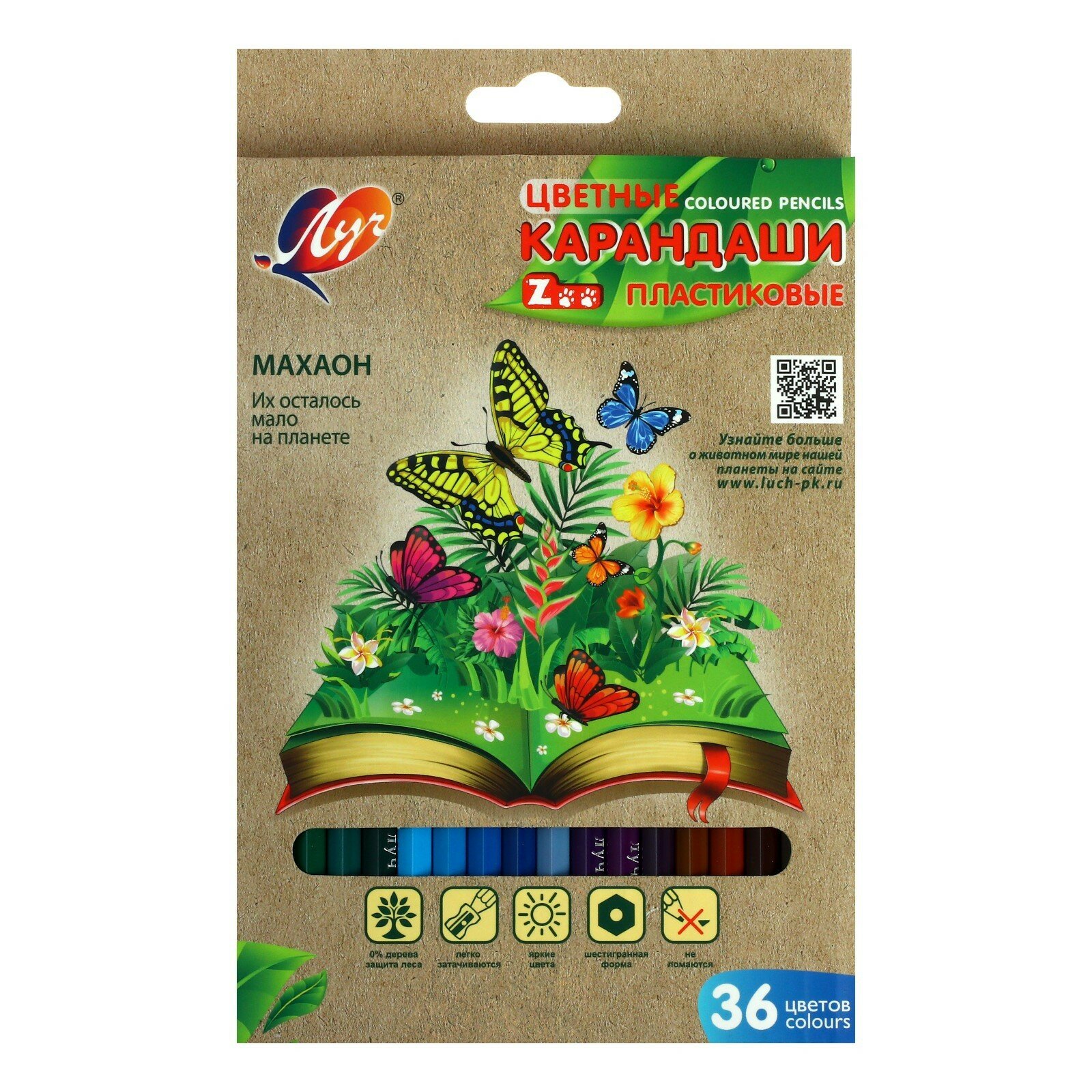 Набор цветных карандашей Луч из серии Zoo, состоящий из 36 цветных карандашей. При их производстве не используется древесина деревьев, корпус карандашей изготовлен из прочного пластика. Удобные в работе, они легко точатся и стираются ластиком. При падении грифель не ломается.