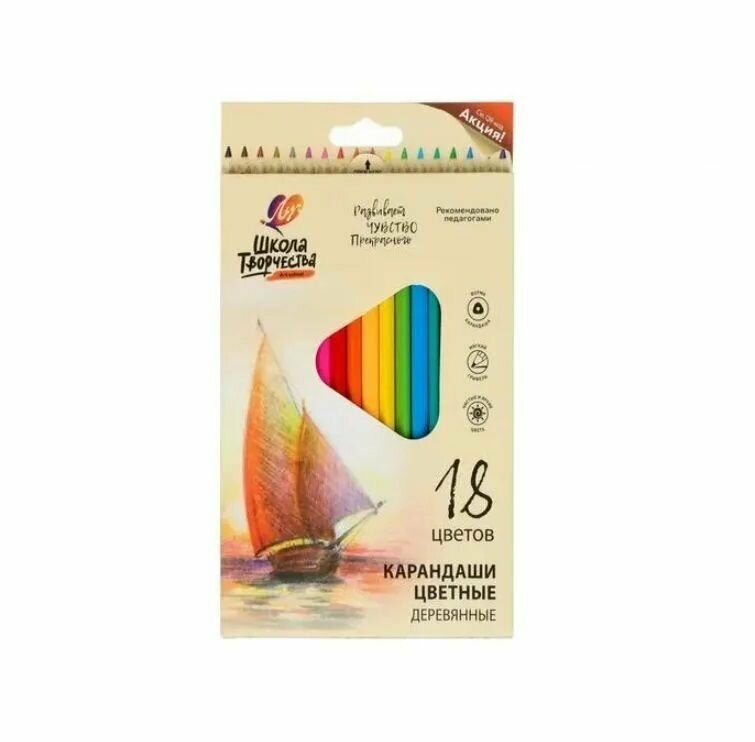 Карандаши цветные Школа творчества 18 цветов трехгранные ЛУЧ