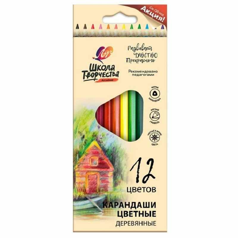 Карандаши цветные Школа творчества 12 цветов трехгранные ЛУЧ
