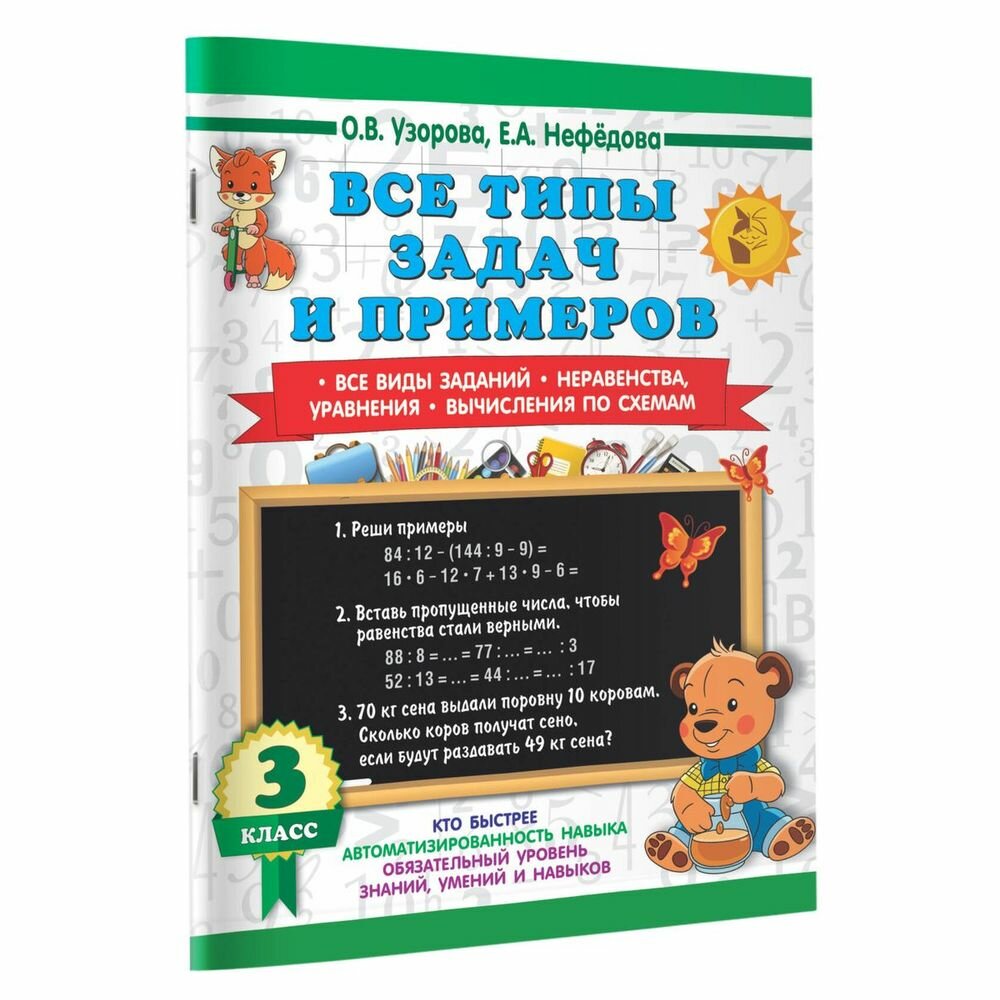 Все типы задач и примеров 3 класс. Все виды заданий. Неравенства уравнения. Вычисления по схемам (Елена Алексеевна Нефедова, Ольга Васильевна Узорова); АСТ, 2024