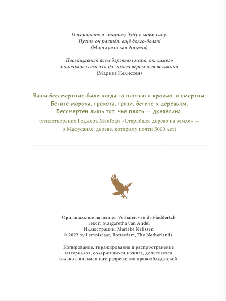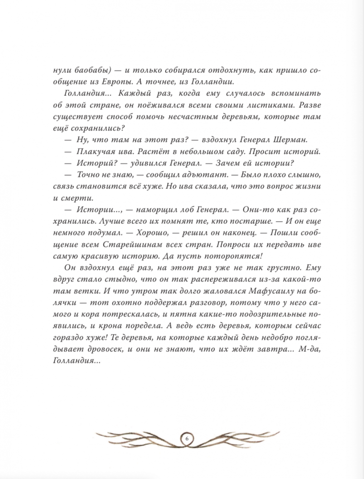 Итак, нас ждёт волшебное путешествие в мир природы и воображения. Язык автора прекрасен, словно мелодия, воплощающая силу природы. Каждая история открывает новую грань взаимосвязи человека с природой и придаёт глубокий смысл простым вещам. Она напоминает нам о важности бережного обращения с природой и о том, что деревья — это не просто растения, а живые существа, которые делят с нами свою историю и мудрость.