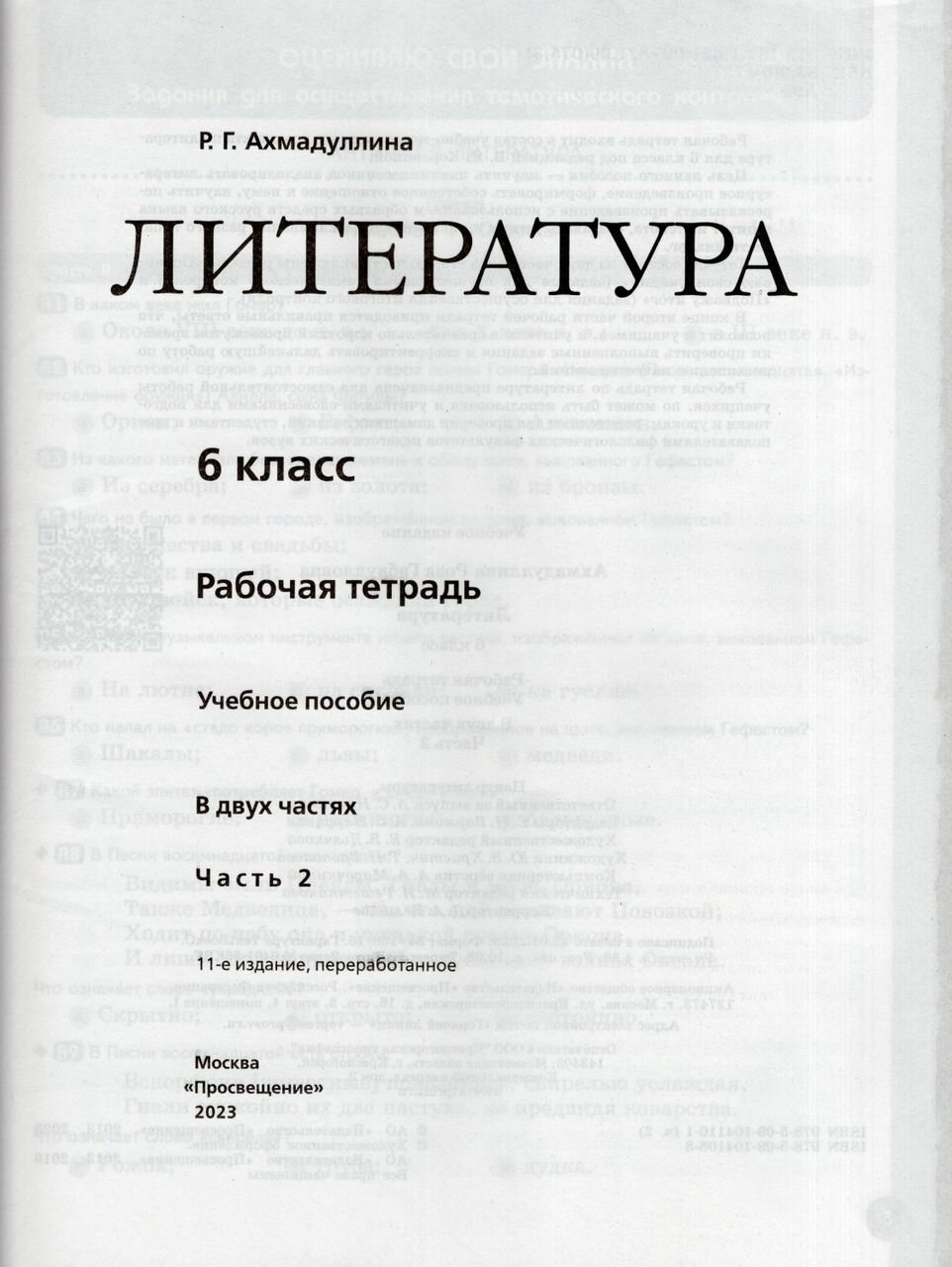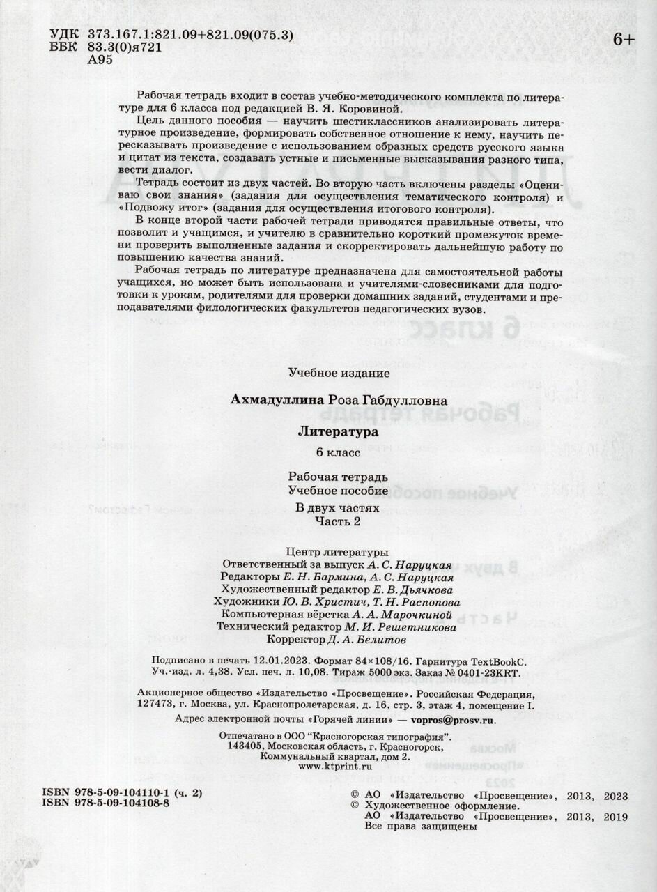 Литература. Рабочая тетрадь. 6 класс. Учебное пособие. В двух частях. Часть 2 (Ахмадуллина Роза Габдулловна); Просвещение Издательство, 2023