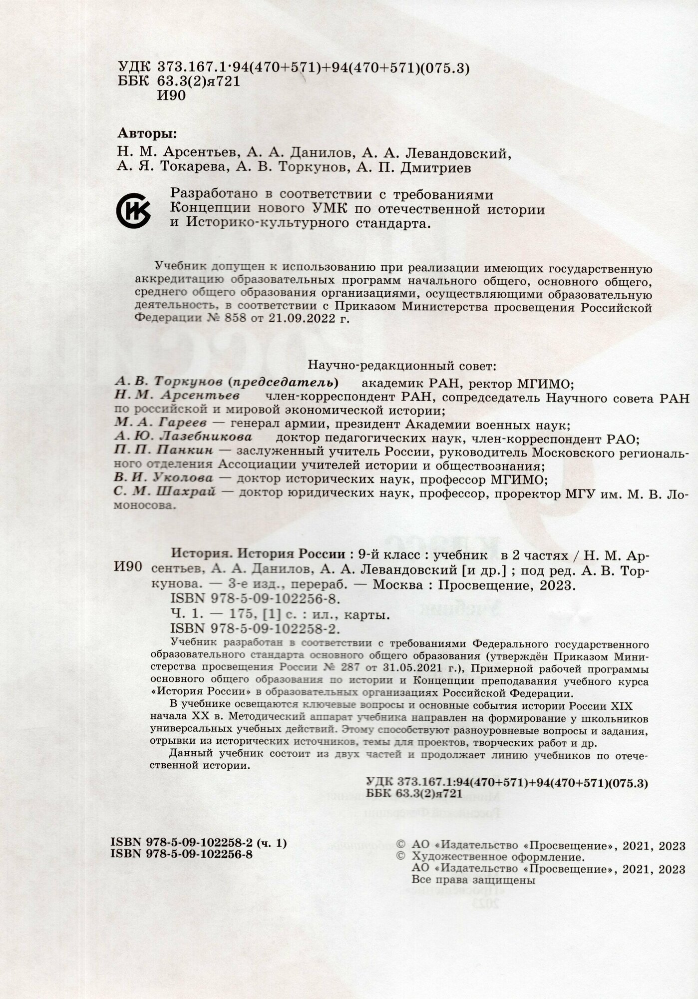 История. История России. 9 класс. Учебник. В двух частях. Часть 1 (Андрей Анатольевич Левандовский, Николай Михайлович Арсентьев, Александр Анатольевич Данилов); Просвещение, 2025