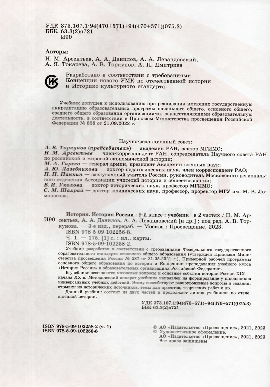 История. История России. 9 класс. Учебник. В двух частях. Часть 2 (Торкунов Анатолий Васильевич, Данилов Александр Анатольевич, Арсентьев Николай Михайлович); Просвещение, 2024