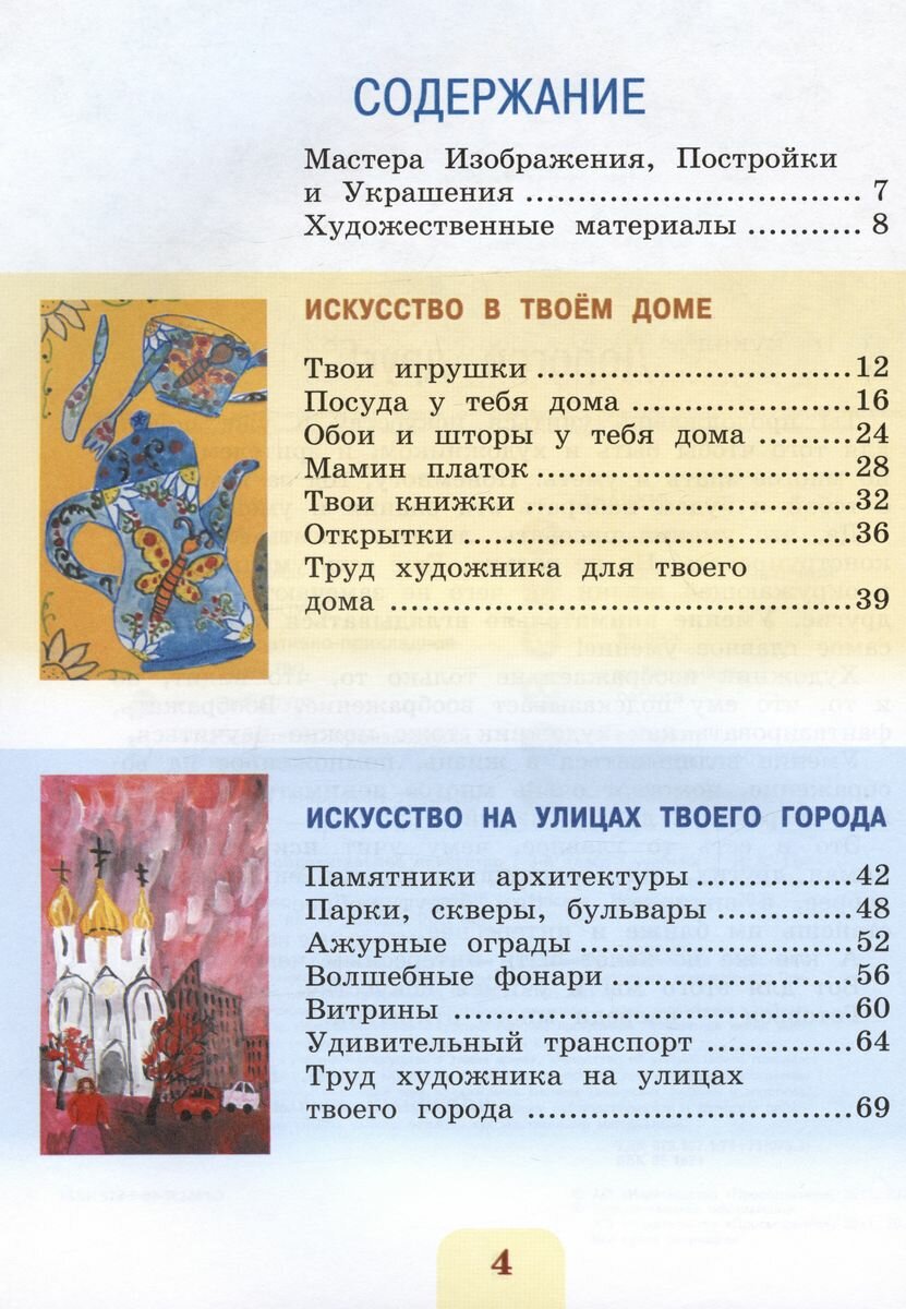 Учебник соответсвует ФГОС 2021 г. Учебник разработан в соответствии с требованиями Федерального государственного образовательного стандарта начального общего образования, утверждённого приказом Министерства просвещения № 286 от 31.05.2021 г. В основе учебника — содержательные принципы и темы, отражённые в рабочей программе «Изобразительное искусство. Рабочие программы. Предметная линия учебников под редакцией Б. М. Неменского. 1—4 классы». Темы учебника «Искусство в твоём доме», «Искусство на улицах твоего города», «Художник и зрелище», «Художник и музей» соответствуют темам программы для 3 класса. По каждой теме предлагается система творческих заданий и вопросов, цель которых — развитие образного мышления, наблюдательности и фантазии ребёнка, умений владеть самыми разными художественными материалами и техниками.