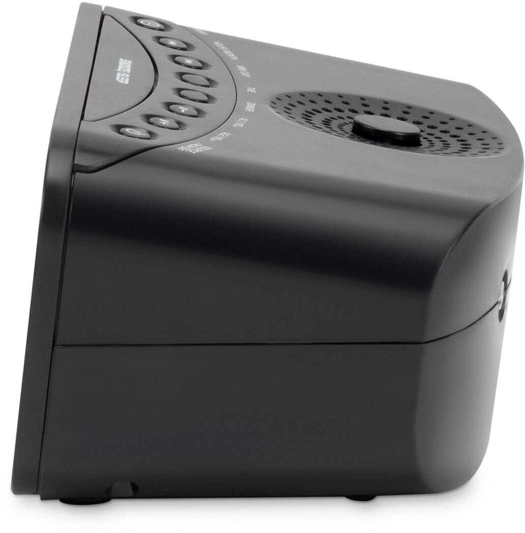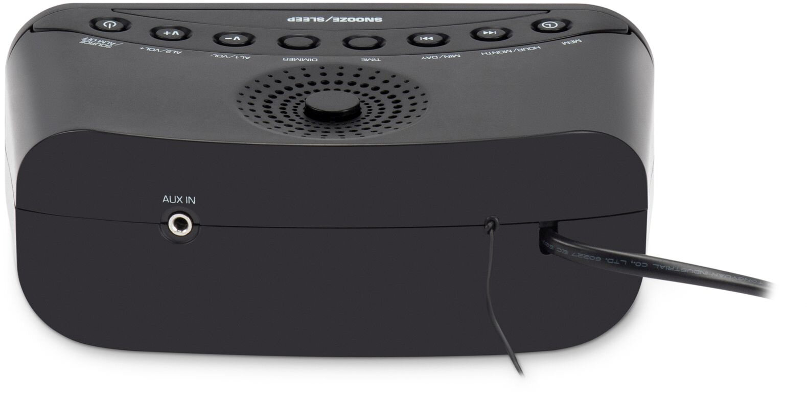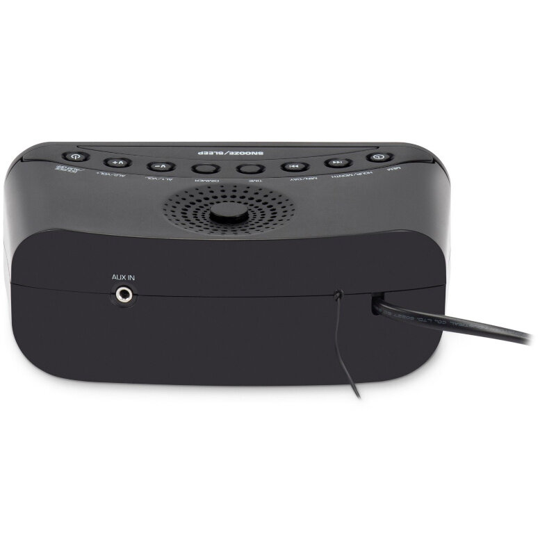 Жидкокристаллический дисплей девайса выполнен с диагональю 1.2 дюйма. Цифры на нём имеют четко очерченный контур и прекрасно различимы в темноте. Корпус устройства сделан из чёрного пластика. Он лёгкий и прочный, собран качественно и без люфтов. На верхней части часов расположены кнопки, необходимые для настройки и использования всего функционала. Он включает эргономичный будильник с двойным временным интервалом, который невозможно проспать. В качестве звукового сигнала может выступать стандартный или радио. FM-тюнер — ещё одна полезная особенность данной модели. Он работает в пределах 87.5 — 108 МГц и принимает большинство станций. Просыпаться под радиоэфир гораздо приятнее, а также к этому звуку сложнее привыкнуть.