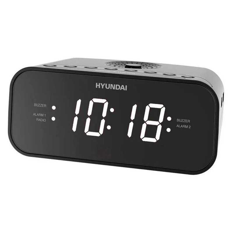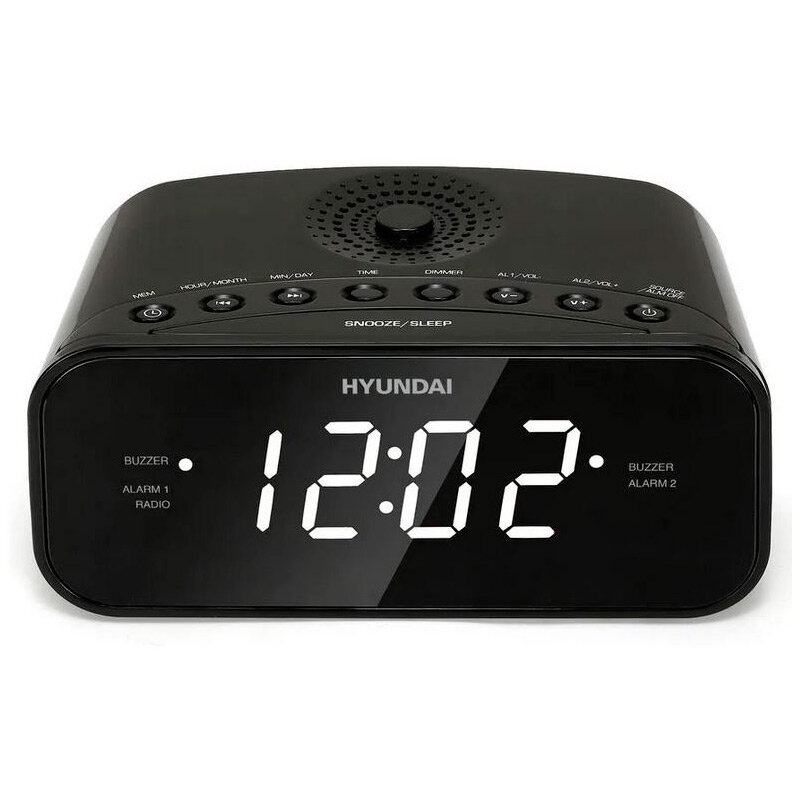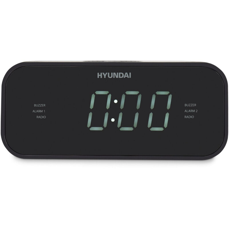 Радиобудильник Hyundai H-RCL221 черный, зеленая подсветка часов, цифровой FM тюнер, питание от бытовой электросети