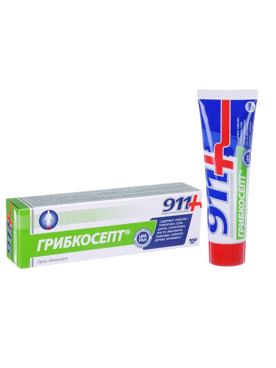 Гель для рук и ног 911 "Грибкосепт" при грибковых инфекциях, 100 мл. «Грибкосепт» содержит триклозан и комплекс эфирных масел. Способствует снятию воспаления, устраняет зуд, успокаивает и смягчает кожу. Оказывает дезодорирующее действие и снижает потливость ног. Способствует повышению естественного иммунитета кожи. Используйте гель для профилактики грибковых инфекций при посещении бань, саун, бассейнов, пляжей. Активные компоненты: триклозан, аллантоин, Drieline, масло можжевельника, масло лаванды, цинк, масло шалфея, масло эвкалипта, масло чайного дерева, витамин Е. (2920622)