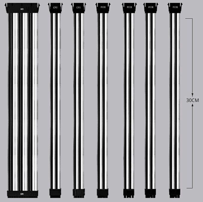 | Назначение | комплект удлинительных кабелей для блока питания:1x24-pin ATX, 1x 8-pin (4+4) EPS, 1x 8-pin EPS, 2x 8-pin (6+2) PCI-E, 2x 8-pin PCI-E |