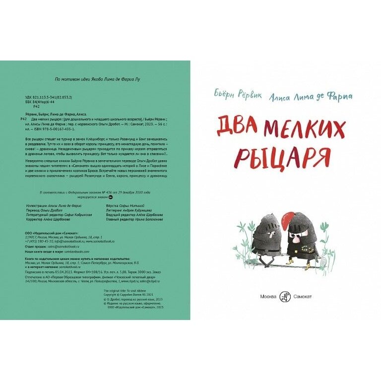 Книга: Два мелких рыцаря (де Фариа Алиса Лима (иллюстратор), Рервик Бьёрн Фредрик); Самокат, 2023