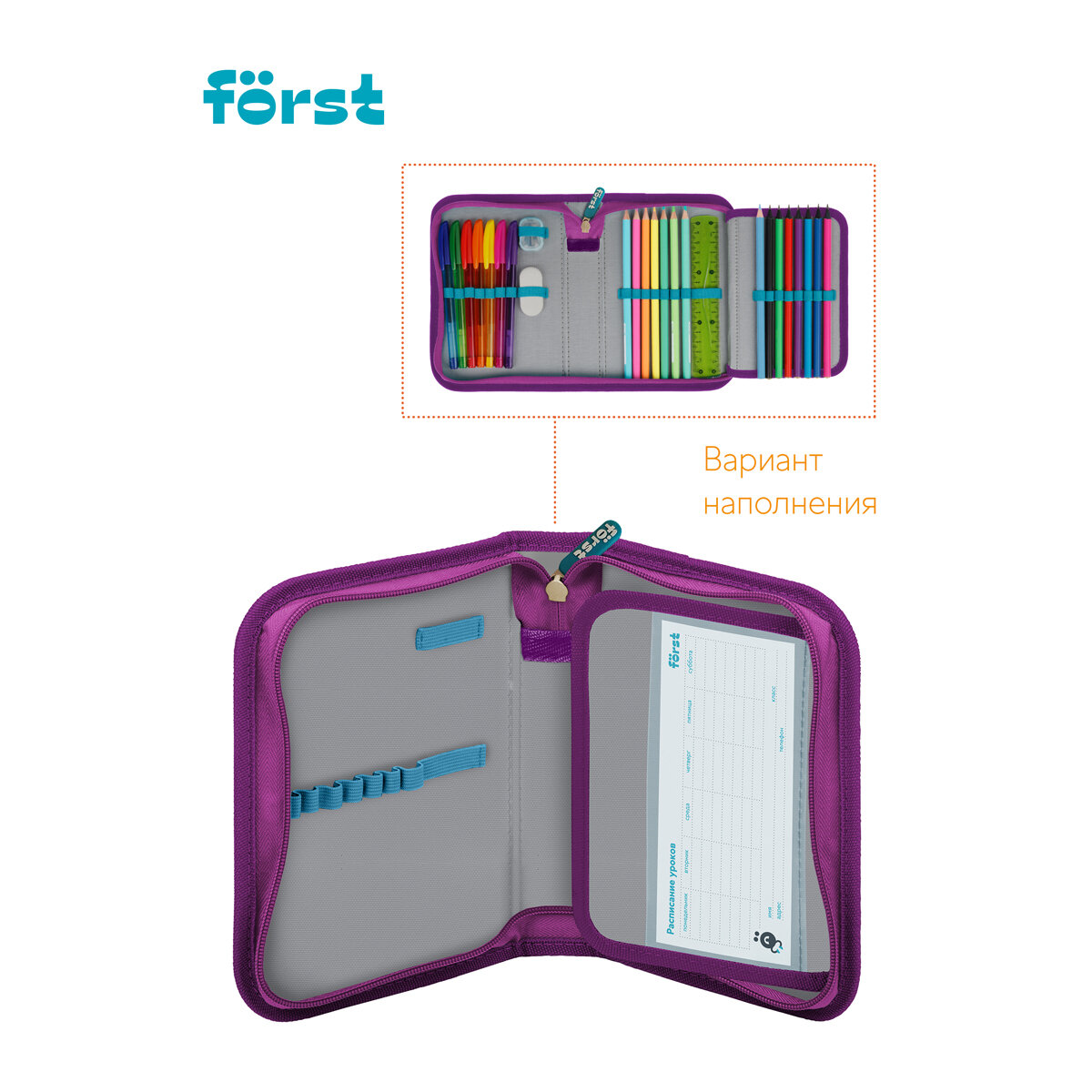 Пенал школьный Forst станет отличным помощником в учёбе. Модель размера 200х140х40 мм имеет одно отделение, закрывающееся на молнию. Пенал изготовлен из качественного полиэстера с принтом на внешней поверхности. Внутри имеются резиночки-крепления для канцтоваров. Поставляется без наполнения.