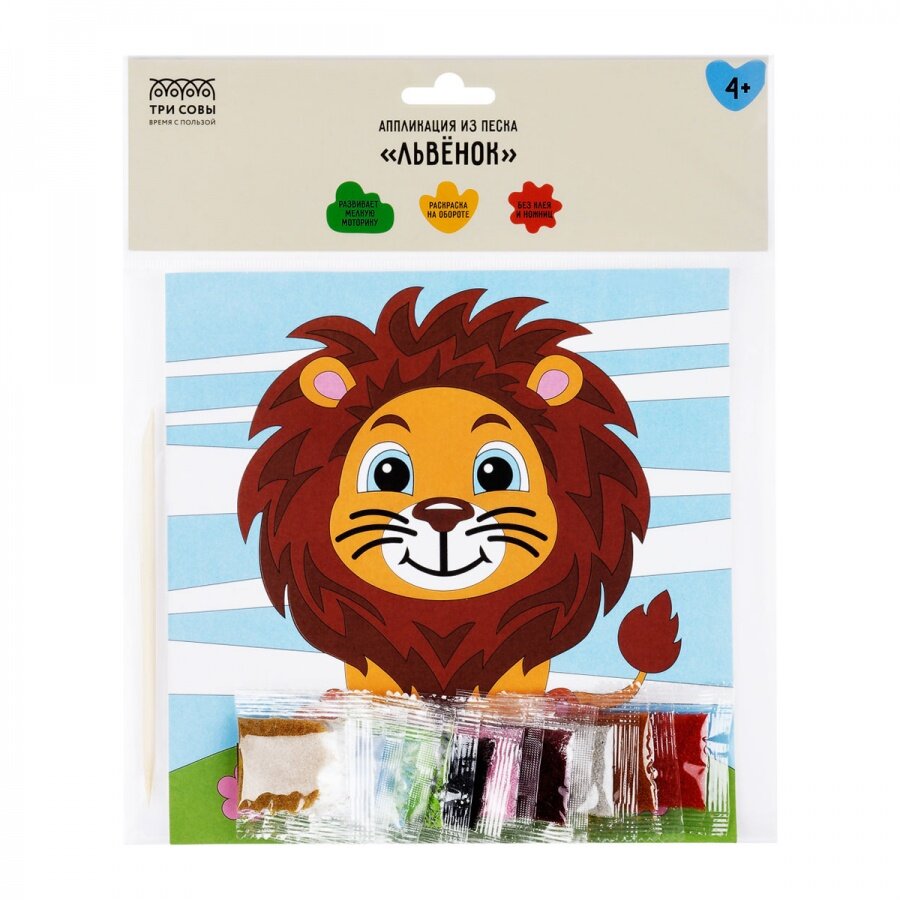 Аппликация из песка Львенок с раскраской Три совы