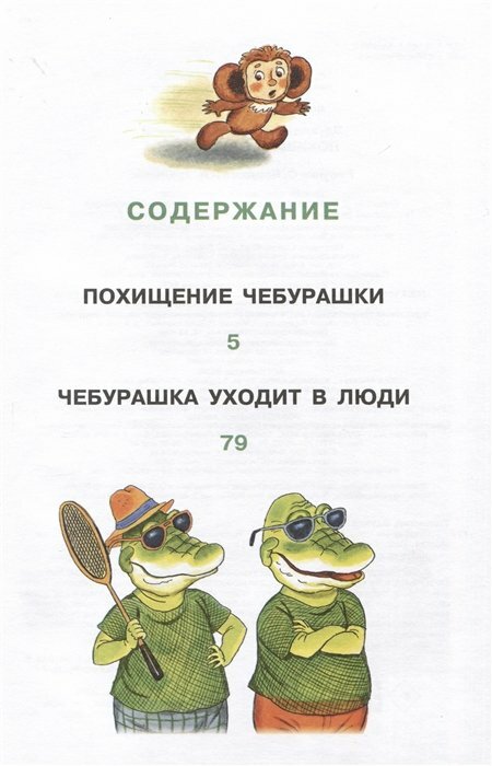 В книгу вошли две повести Эдуарда Успенского про Чебурашку: «Похищение Чебурашки» и «Чебурашка уходит в люди» с новыми иллюстрациями С.Бордюга и Н.Трепенок. В первой повести Чебурашка наконец получил новую квартиру, и ему на новоселье все друзья сразу подарили телевизоры. Читателям придётся задуматься о том, что может случиться, если телевизоров слишком много. Во второй повести крокодил Гена случайно стал нарушителем сразу нескольких законов. Но он не растерялся и быстро освоился в настоящей русской деревне на настоящей русской реке.