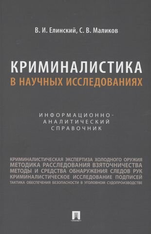 Криминалистика в научных исследованиях. Информационно-аналитический справочник.-М.:Проспект2023. (Маликов Сергей Владимирович,Елинский Валерий Иванович); Проспект, 2023
