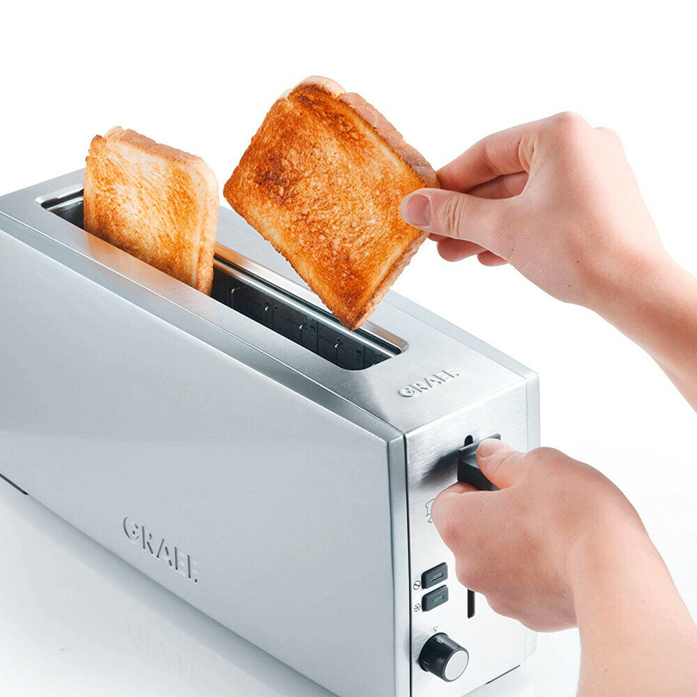 | Прочие особенности и свойства | Тостер с длинным слотом для 2 тостов,6 степеней поджаривания,Держатель для булочек,Защитное отключение при застревании ломтика |