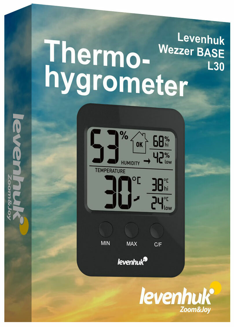 Термогигрометр Levenhuk поможет следить за температурой и влажностью воздуха в помещении. Гаджет демонстрирует на экране не только результаты измерений, но и тенденции к увеличению или уменьшению значений параметров, а также отображает предельные показания. Компактный и простой в обращении цифровой термогигрометр пригодится в каждом доме. В конструкции предусмотрено магнитное крепление, позволяющее разместить прибор на холодильнике.
