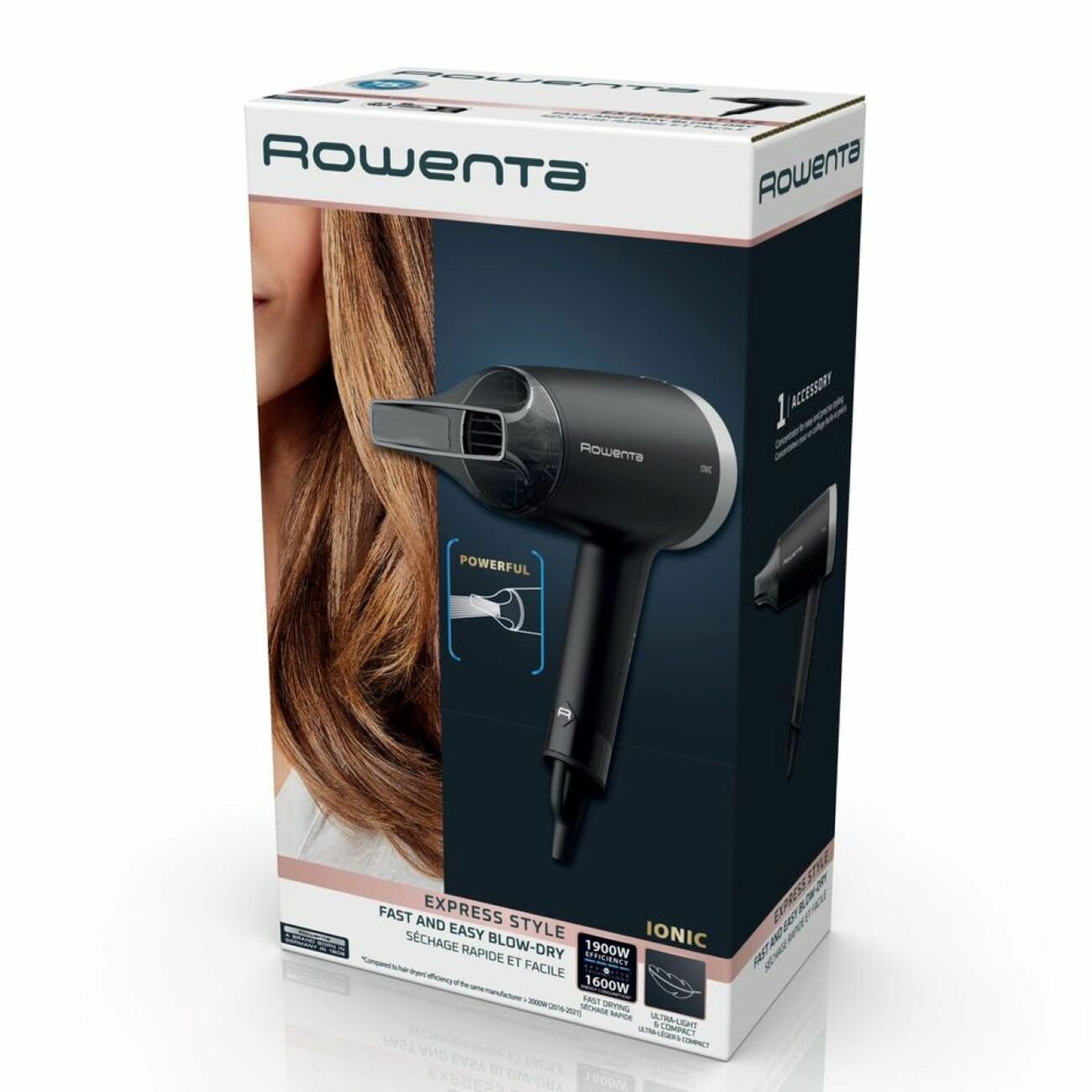 Обеспечить великолепный вид укладки за считанные минуты до выхода из дома – фен Rowenta Express Style создан именно для этого. Технология Effiwatts позволяет обеспечить высокую эффективность сушки и снизить энергопотребление, сохранив легкость и компактность корпуса, концентратор и 2 настройки скорости и температуры делают фен по-настоящему универсальным и удобным для ежедневной сушки и укладки, а ионизация сделает волосы еще более сияющими, мягкими и послушными.