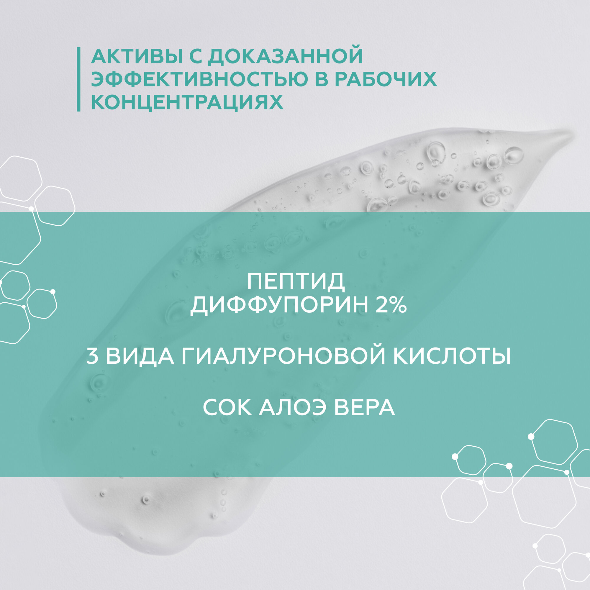 | Активные компоненты | Активы: диффупорин, сок алоэ вера, низкомолекулярная гиалуроновая кислота, высокомолекулярная гиалуроновая кислота, гиалуроновая кислота со сверхмалой длиной цепи. Состав: aqua, glycerin, propylene glycol, butylene glycol, aloe barbadensis leaf juice, sodium hyaluronate, diazolidinyl urea, actylates/c10-30 alkyl acrylate crosspolymer, potassium hydroxide, methylparaben, disodium edta, propylparaben, acetyl hexapeptide-37, parfum. |