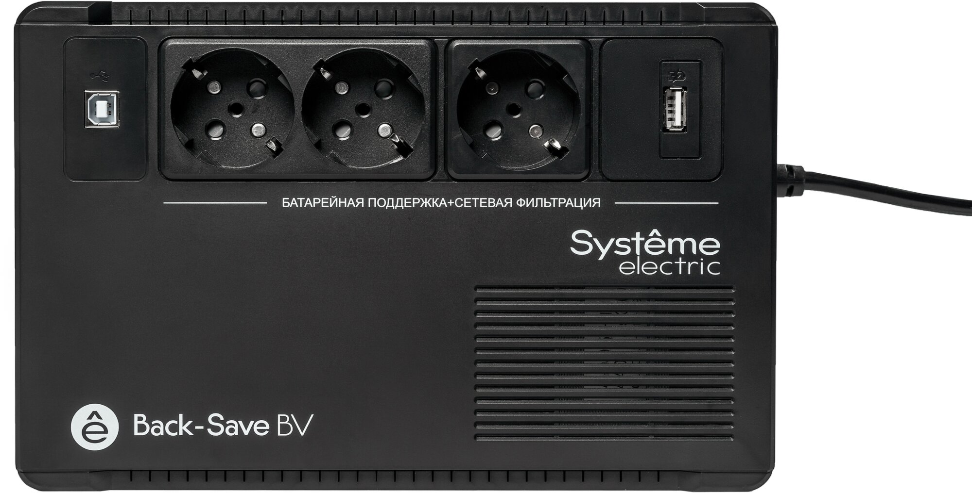 Источник бесперебойного питания Systeme Electriс Back-Save 600VA/360W 230V Line-Interactive AVR 3xSchuko USB charge(type A) USB (BVSE600RS) Systeme Electric