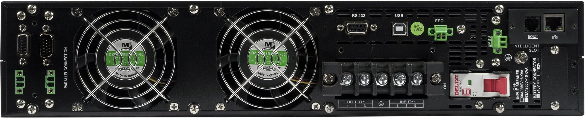 | Интерфейсы ИБП | EMBS (external maintenance bypass switch) port , порт параллельного соединения ИБП, порт совместного тока, EPO |