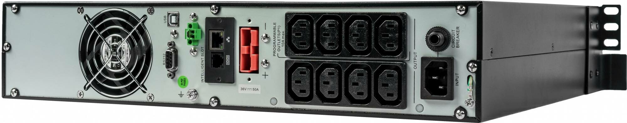 ИБП Smart – Save Online 1кВА/1кВт двойного преобразования для защиты чувствительного оборудования в малых и средних предприятиях. Имеет высокий коэффициент мощности PF=1.0. Предназначен для напольной установки или для установки в серверные стойки. Наиболее продвинутый LCD-дисплей, содержащий 20 настроек. Функция USB HID позволяет видеть базовую информацию о заряде ИБП на ПК без установки и/или входа в ПО. Наличие разъёма EPO для системы аварийного отключения. Карта управления SNMP в комплекте. Большое количество выходных розеток – 8 IEC C13, есть группа программируемых розеток. Компактный корпус – 2U. Возможность подключения до 10 дополнительных внешних батарейных блоков.