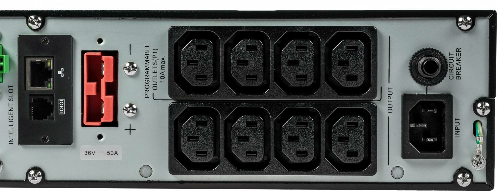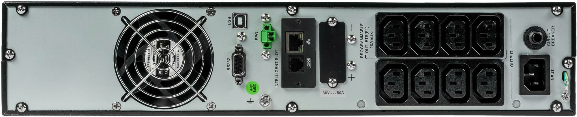 | Интерфейсы ИБП | USB HID type B, RS-232 port, Intelligent Slot, коннектор подключения батареи, EPO |