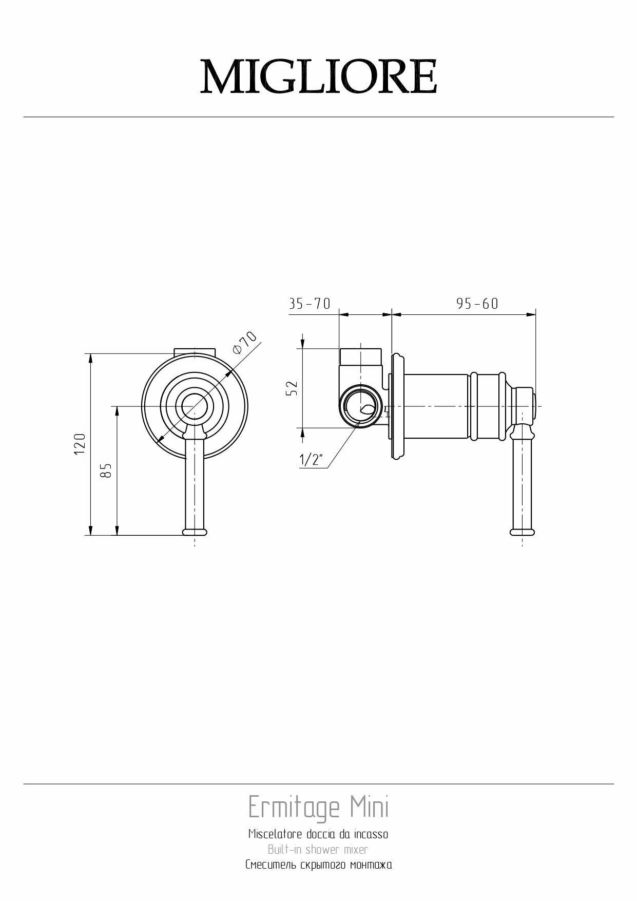 Смеситель для душа Migliore Ermitage Mini 31429 С ВНУТРЕННЕЙ ЧАСТЬЮ бронза