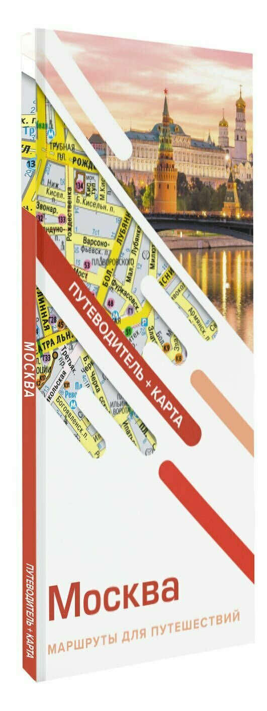 Очень большой путеводитель от издательства Аст по такой низкой цене. Правая сторона сложена в гармошку, которую можно развернуть где-угодно в пути и посмотреть, где вы находитесь. Карта внутри выглядит просто внушительно огромной и красочной, которая поможет не заблудиться в Москве. Всё детально описано в ней