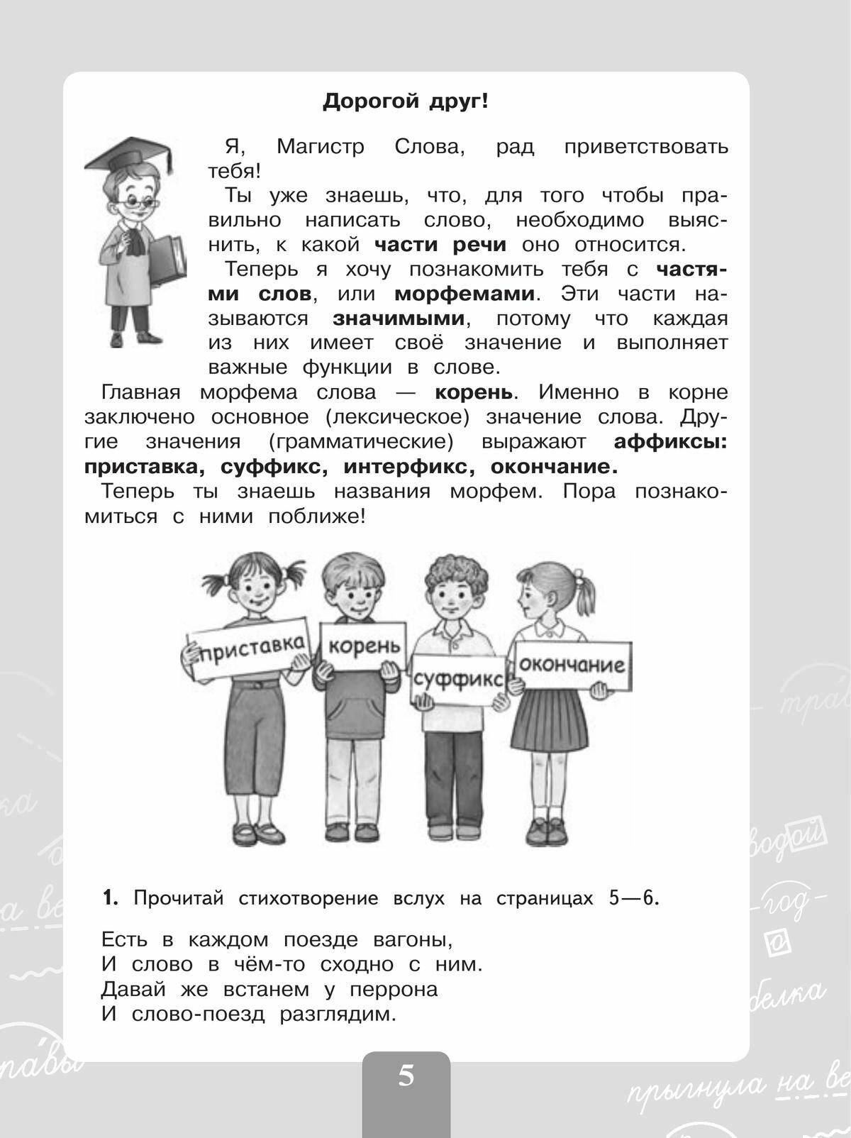Специальная рубрика «Магистр Слова» содержит занимательные истории о частях слова (морфемах).