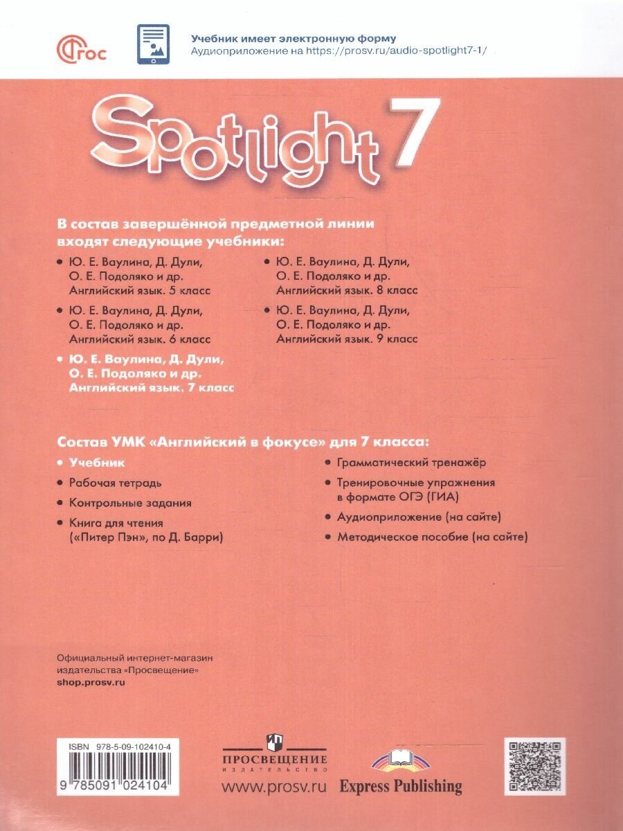Учебник соответствует ФГОС 2021 г. Учебник является центральным элементом учебно-методического комплекта "Английский в фокусе" и предназначен для учащихся 7 классов общеобразовательных организаций.