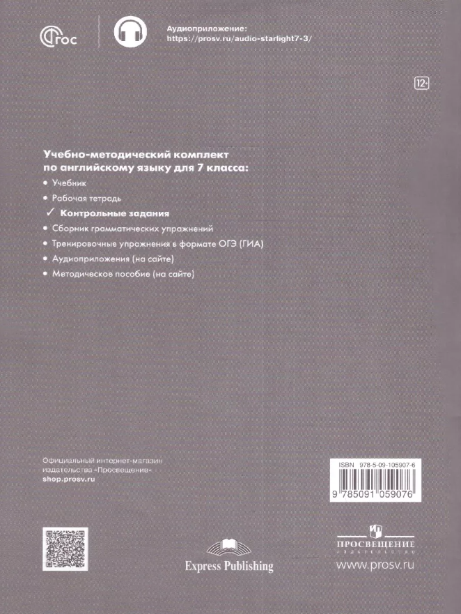 Сервис сравнения цен СкидкаГИД предлагает сравнить цены на товар «Книга: Starlight. Английский язык. 7 класс. Углубленный уровень. Контрольные задания. Учебное пособие (Баранова Ксения Михайловна; Копылова Виктория Викторовна; Дули Дженни); Просвещение, 2023»