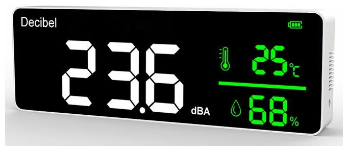 Levenhuk – домашний термогигрометр с функцией шумомера. Вся информация подается наглядно на встроенном цветном экране, индикацию легко увидеть даже на большом удалении. Прибор выглядит стильно и отличается простым управлением, поэтому идеально подходит для подарка. Для питания используется встроенный аккумулятор. Шумомер-термогигрометр Levenhuk в первую очередь позволяет следить за очень важным показателем, влияющим на самочувствие, – уровнем шумового загрязнения. Контролировать его стоит не только дома, но и в офисе, так как из-за сильного и долгого шума снижается работоспособность и повышается уровень стресса. Помимо числовых показателей на экране присутствует и шкала уровня комфорта – небольшие смайлики, по которым легко понять, является ли ситуация неблагоприятной. Под температуру и влажность воздуха отведено чуть меньше места, чем под шумомер, но индикацию видно хорошо – цветной экран яркий и контрастный. Есть возможность включить подсветку. Для зарядки прибора дополнительно потребуется сетевой адаптер или зарядное устройство для смартфона. Основные особенности: Три в одном: термометр, гигрометр, шумомер Яркий и контрастный экран с крупной индикацией Есть подсветка, питание от аккумулятора Комплектация: Термогигрометр Кабель USB Инструкция по эксплуатации и гарантийный талон