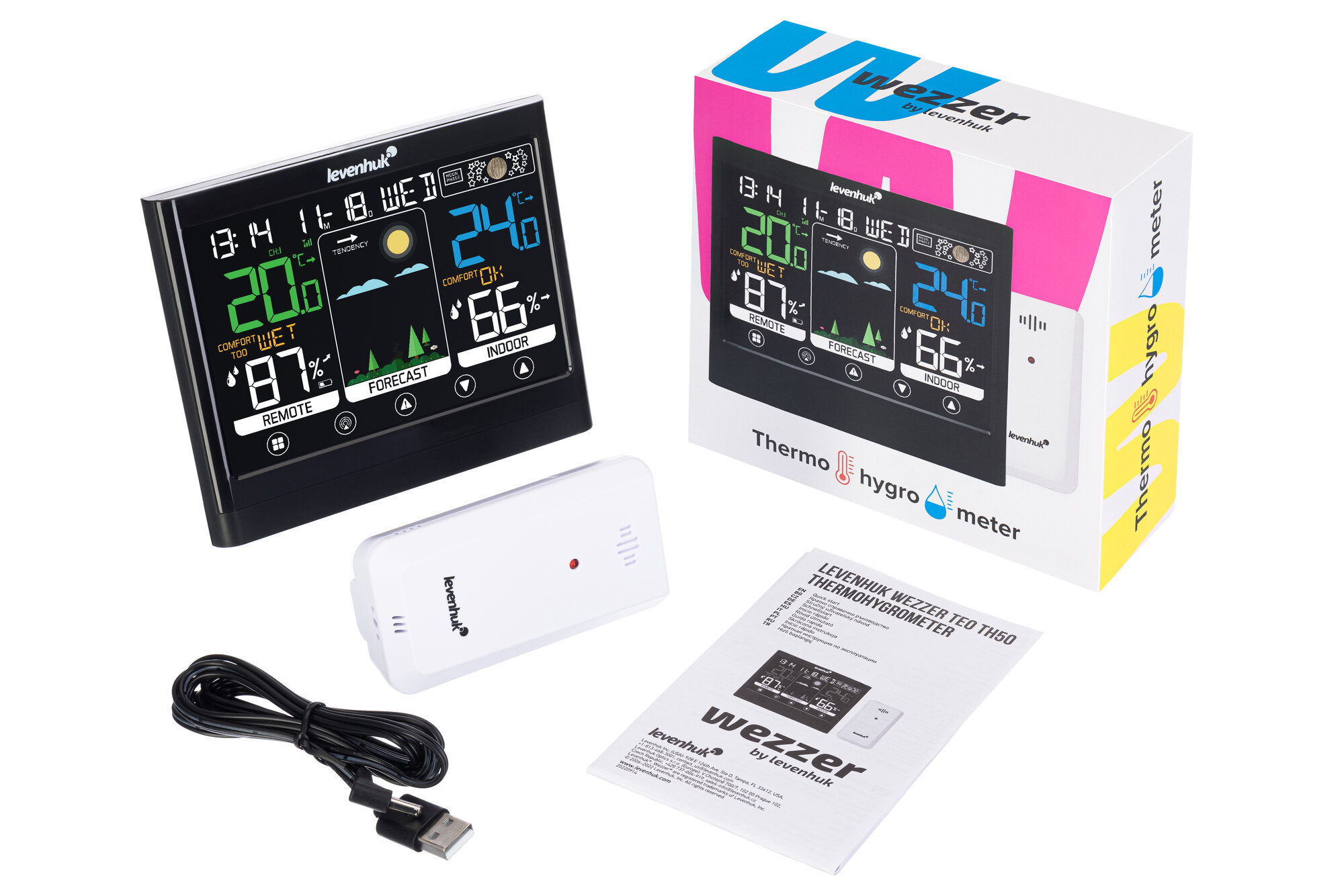 | Комплектация | Внешний термогигродатчик, Кабель USB, Руководство по эксплуатации, Термогигрометр |