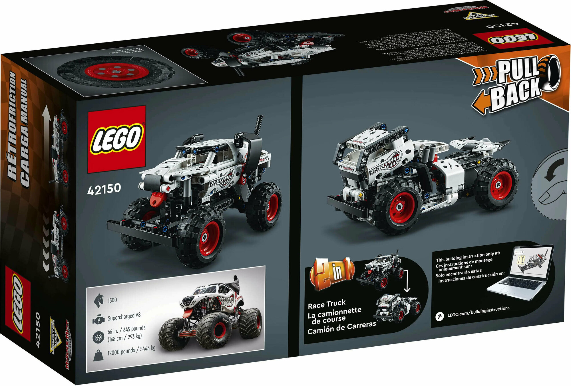 - Сборка модели монстр-трака — дети могут собрать и участвовать в гонках на этом игрушечном грузовике LEGO Technic Monster Jam Monster Mutt Dalmatian (42150). Эта игрушка 2-в-1 с откатным механизмом предлагает часы игры.