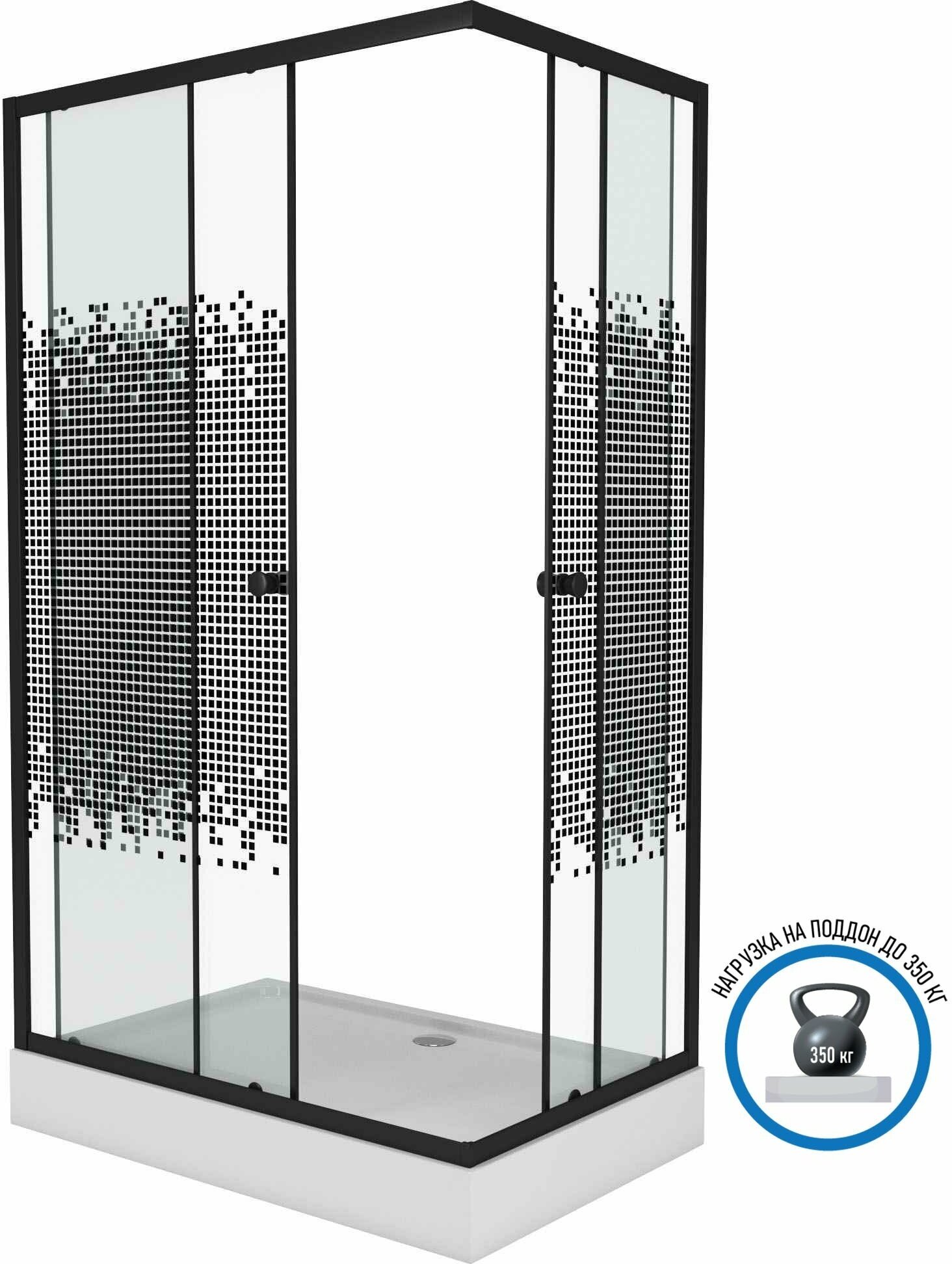 Душевой уголок Niagara Eco 80х100 0181452Q. . Стекло мозайка. 2 места. Крепкий акриловый поддон на металлическом каркасе, максимальная нагрузка до 300 кг. Высота поддона-13см, глубина чаши 4см. Тип душевого угла – прямоугольный. Размер-80x100, высота-195 см. Закаленное черное стекло с рисунком. Алюминиевый черный профиль. Система дверей раздвижные с ручками. В комплектацию входит: поддон, сифон и гофра