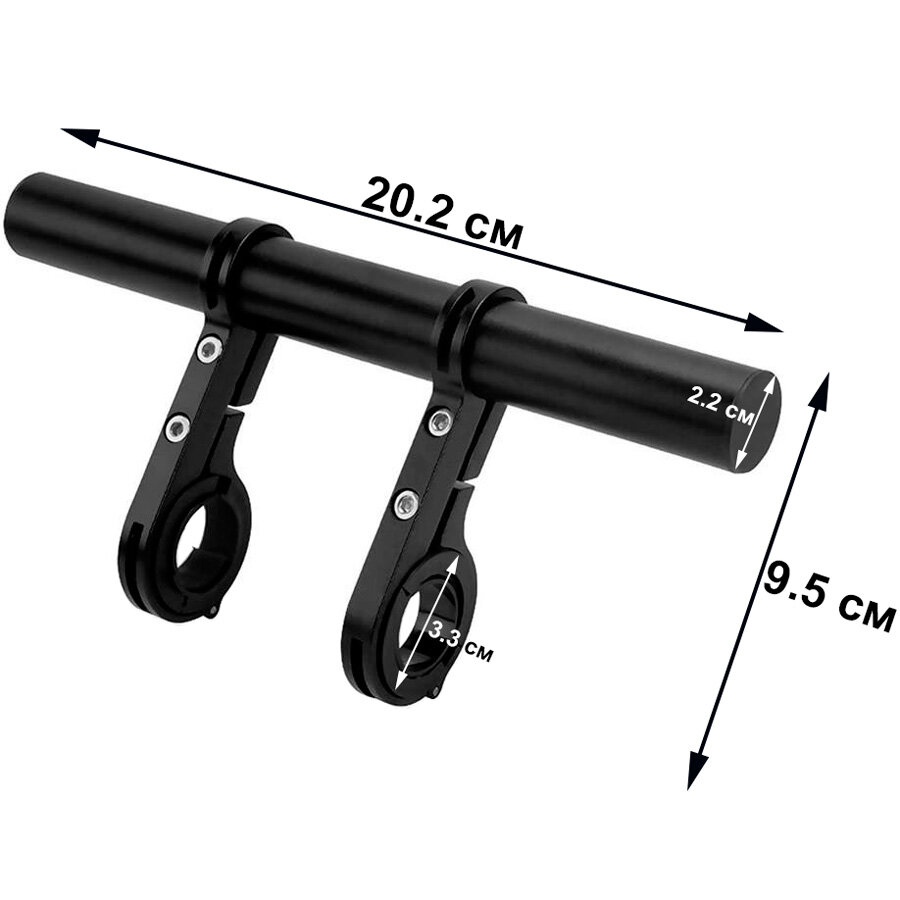 Если на руле вашего велосипеда не осталось свободного места для установки дополнительных аксессуаров, например, фонаря и велокомпьютера, то закрепите на нем удлинитель STG BC-B800. Изделие изготовлено из износостойкого алюминиевого сплава, а значит долго вам прослужит. Фиксируется на руле посредством двух хомутов. С ним на раме байке появится свободное место, где вы сможете закрепить дополнительные велосипедные гаджеты: передний велосипедный фонарь для подсветки своего пути, велокомпьютер для фиксации важных параметров поездки и другие.