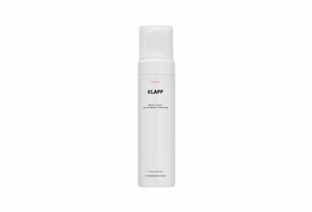Klapp Triple Action Cleansing Foam - очищающая пена с действием против загрязнений, чей инновационный состав глубоко очищает поры кожи, удаляя загрязнения, делает кожу мягкой, увлажненной и сияющей, придавая ощущение свежести.