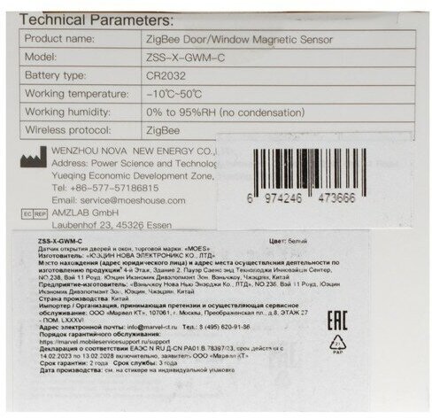 MOES ZSS-X-GWM-C это датчик открытия дверей и окон, который позволяет мониторить состояние окон и дверей в вашем доме или офисе. Датчик легко устанавливается на раму окна или двери и обеспечивает надежный контроль за их состоянием. Датчик MOES ZSS-X-GWM-C имеет стильный и компактный дизайн, который позволяет ему легко интегрироваться в любой интерьер. Он работает на батарейках, что делает его удобным в использовании и не требует проводки. В целом, датчик открытия дверей и окон MOES ZSS-X-GWM-C - это превосходный выбор для тех, кто ищет надежный и удобный способ мониторить состояние окон и дверей в своем доме или офисе. Он обеспечивает надежность, удобство и безопасность при использовании, а также позволяет получать уведомления о состоянии окон и дверей в приложении на смартфоне. Для подключения устройства требуется хаб.