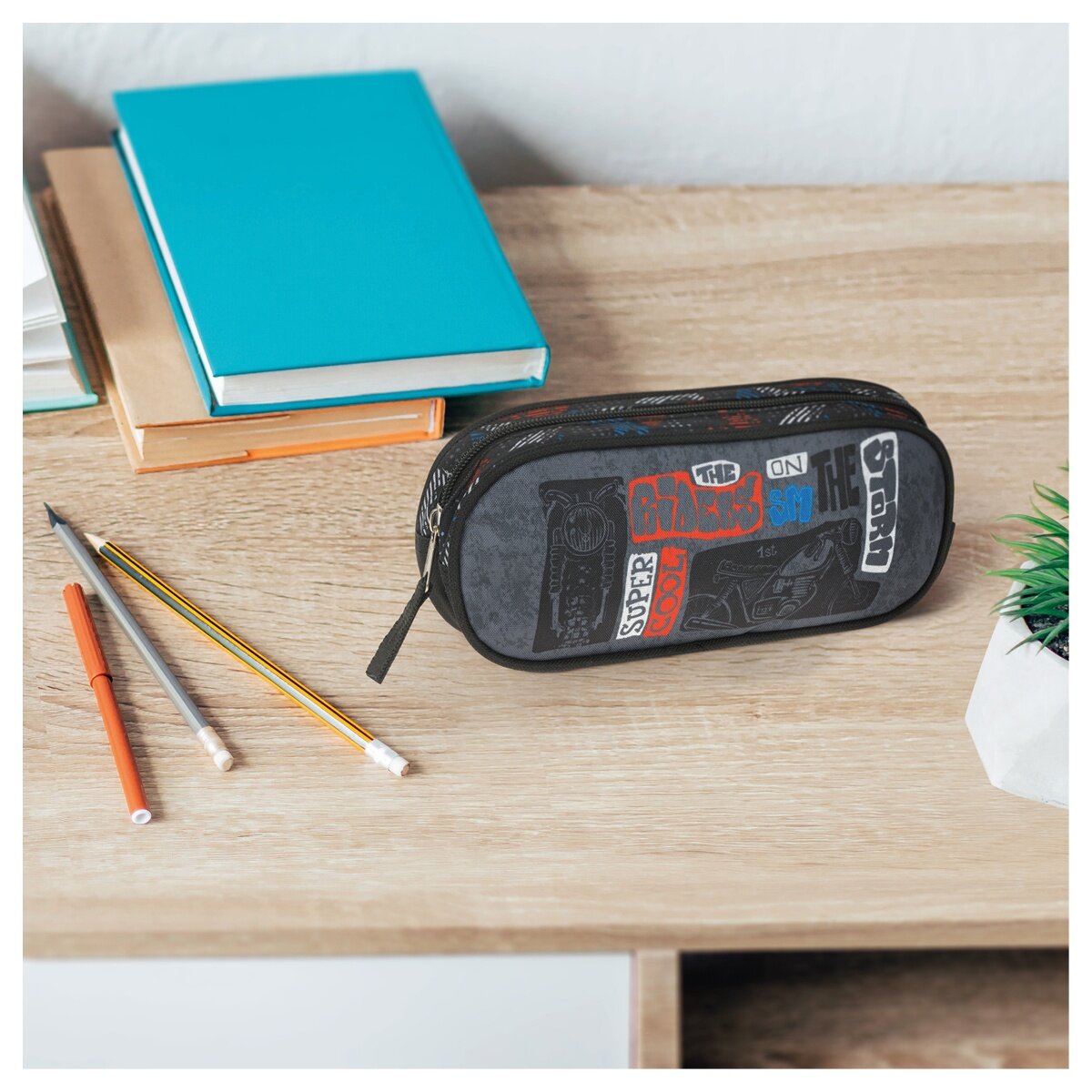 Удобный и яркий школьный пенал для хранения письменных и чертежных принадлежностей.