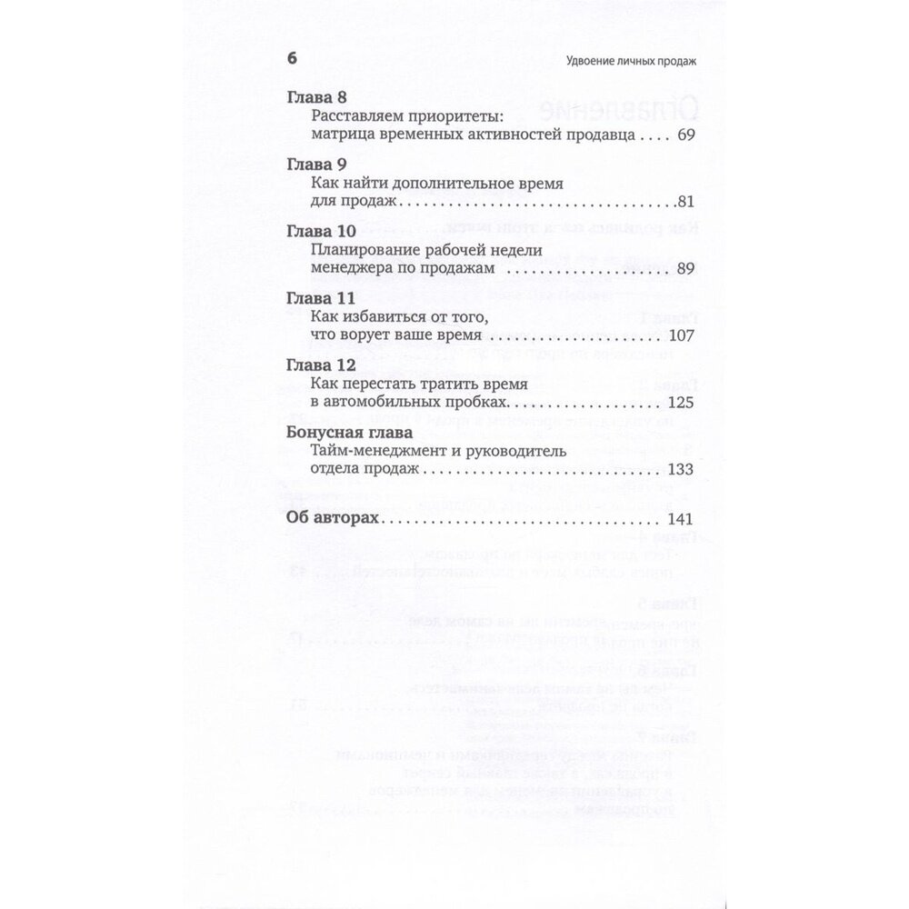 Книга написана профессиональными продавцами специально для продавцов. Авторы предлагают системный подход к управлению временем в продажах и дают четкие рекомендации, которые можно быстро применить на практике: как правильно расставлять приоритеты, как максимизировать результаты и даже как «создавать время» для дополнительных действий, направленных на увеличение продаж.