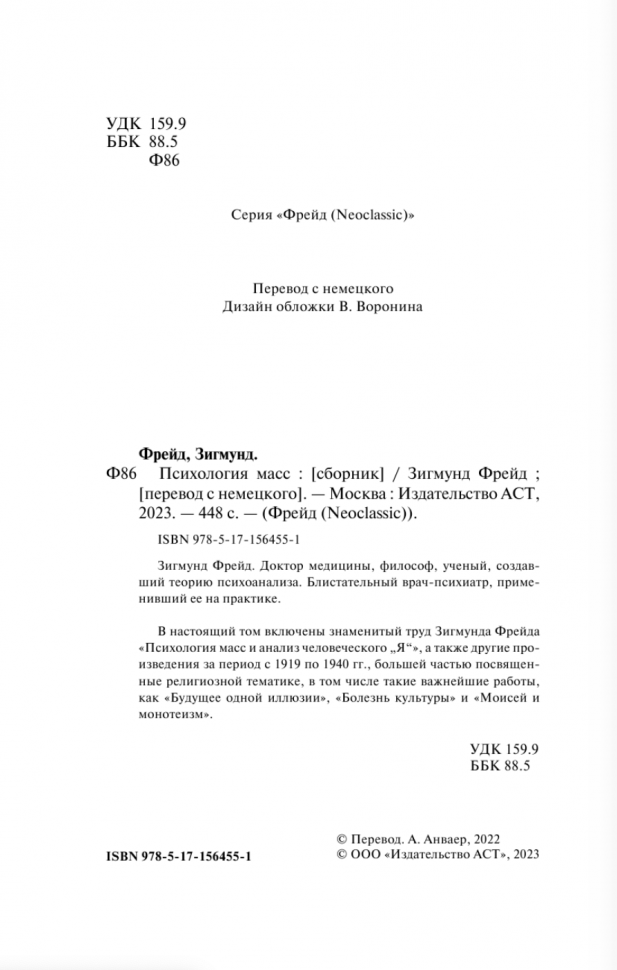 Книга: Психология масс (Зигмунд Фрейд); Издательство АСТ, 2023