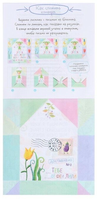 В блокноте представлен уникальный метод обучения чтению. Это 30 волшебных писем от феи Лили, адрессованных ребёнку. Ребёнок читатет их сам, без помощи взрослых. Родителям нужно просто каждый вечер незаметно класть готовое письмо под подушку спящего ребёнка. Уровень сложности рассчитан на детей, которые могут читать простые тексты. При желании фее можно написать ответ. Для этого в блокноте есть готовые письма-конверты и марки-наклейки. Также в письмо можно дополнительно вложить листочек с интересным заданием.