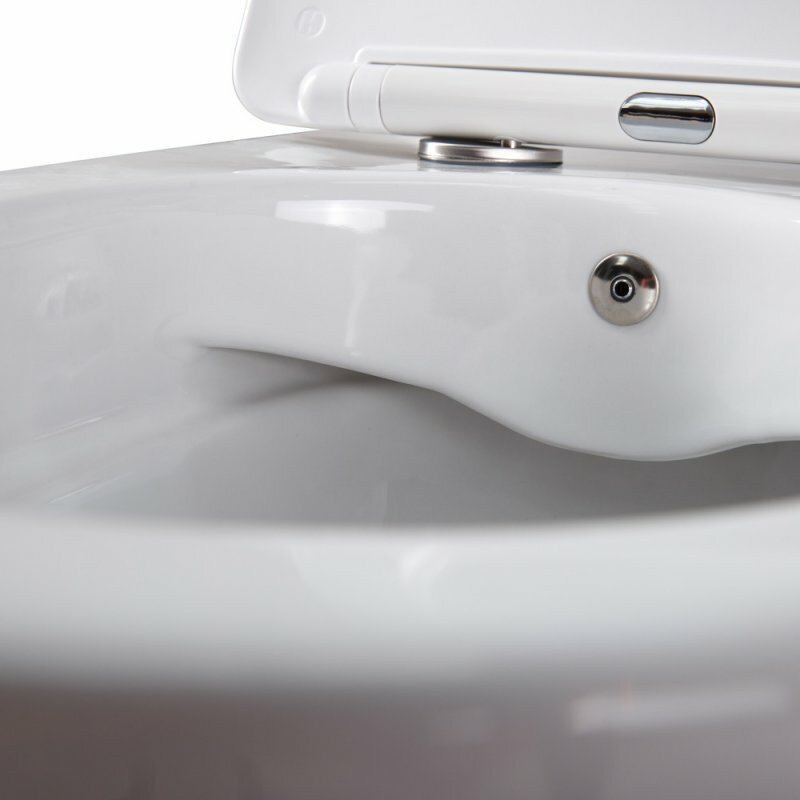 Подвесной унитаз, безободковый с функцией биде. Организация смывающего потока: каскадный смыв. Внимание: крышка-сиденье, встраиваемый смеситель для подключения функции биде - приобретаются отдельно.