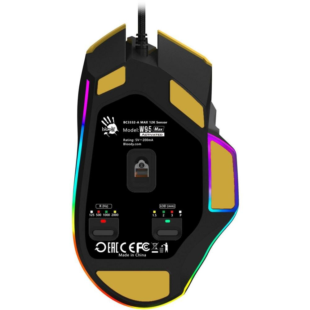 Мышь A4TECH Bloody W95 Max Sports, игровая, оптическая, проводная, USB, желтый и серый [w95 max sports lime]