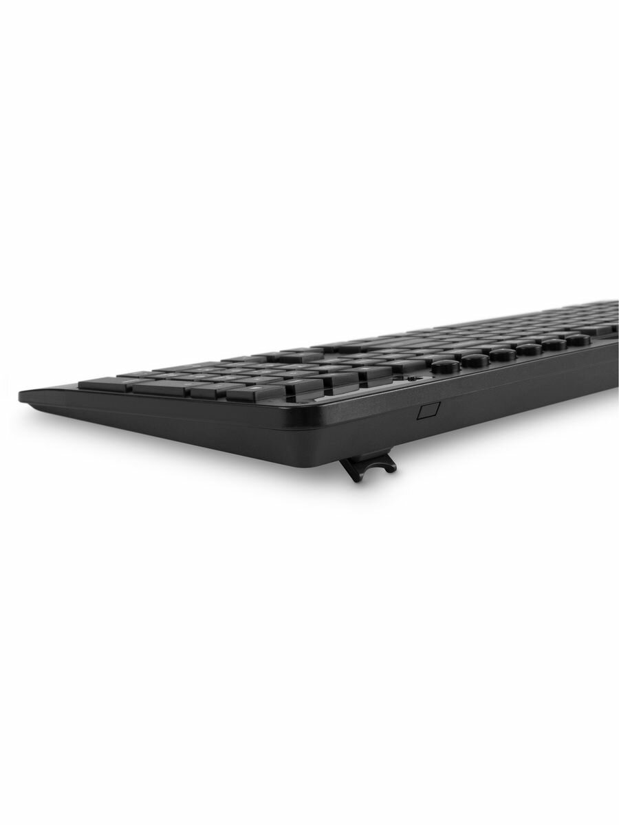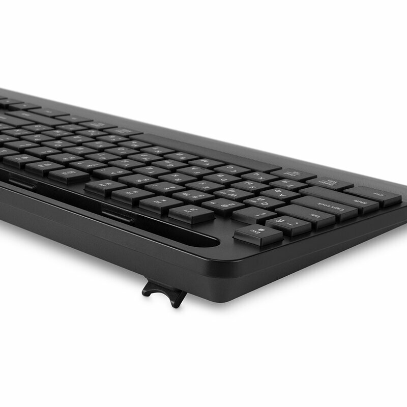 Устройство имеет 115 низкопрофильных бесшумных клавиш. Их ресурс рассчитан на 3 млн нажатий. 12 мультимедийных комбинаций Fn + F1-F12 помогут быстрее получить доступ к разнообразным функциям, например, выделению и копированию текста, запуску домашней страницы браузера и другим. Сверху на клавиатуре есть блок дополнительных кнопок для управления медиаплеером и громкостью.