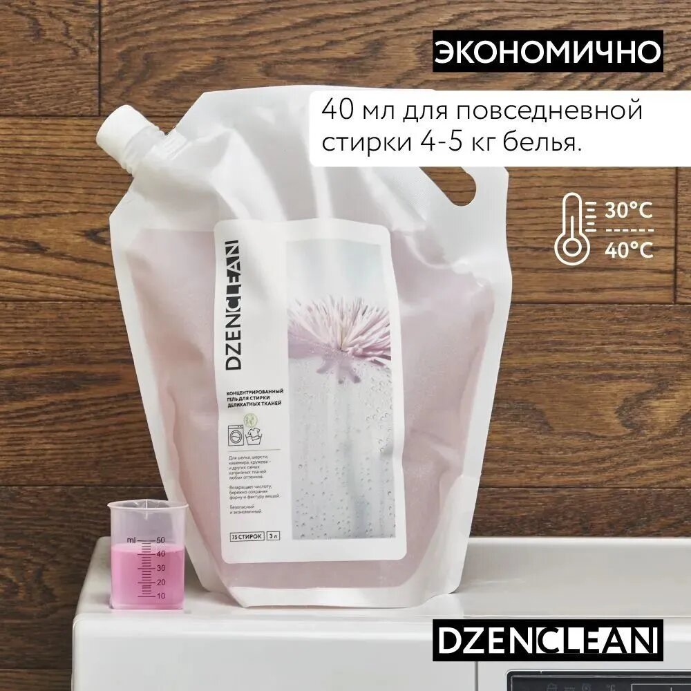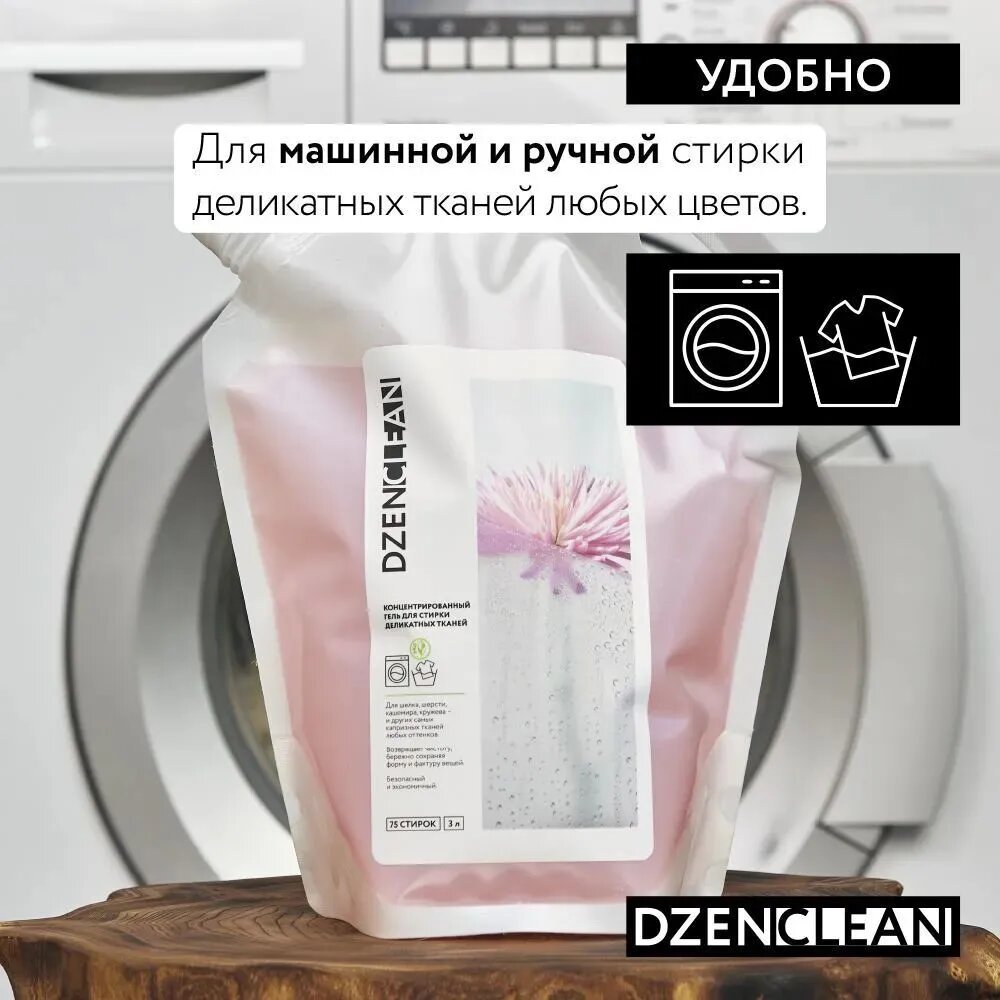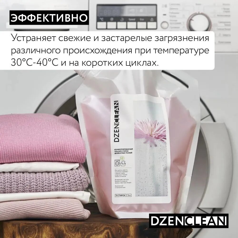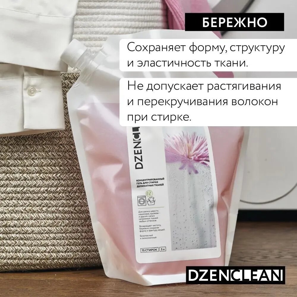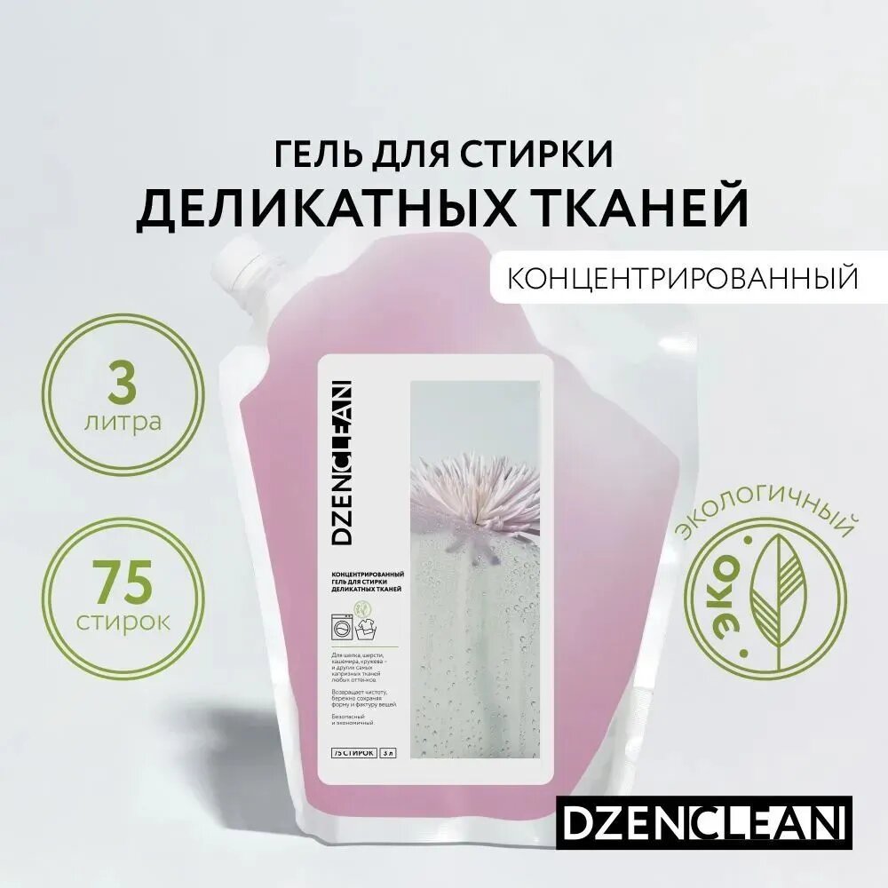 Концентрированный гель для стирки деликатных тканей DZENCLEAN 3 л Концентрированный гель для стирки деликатных тканей 3 л