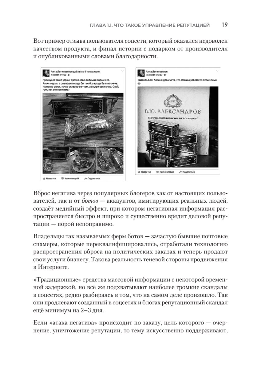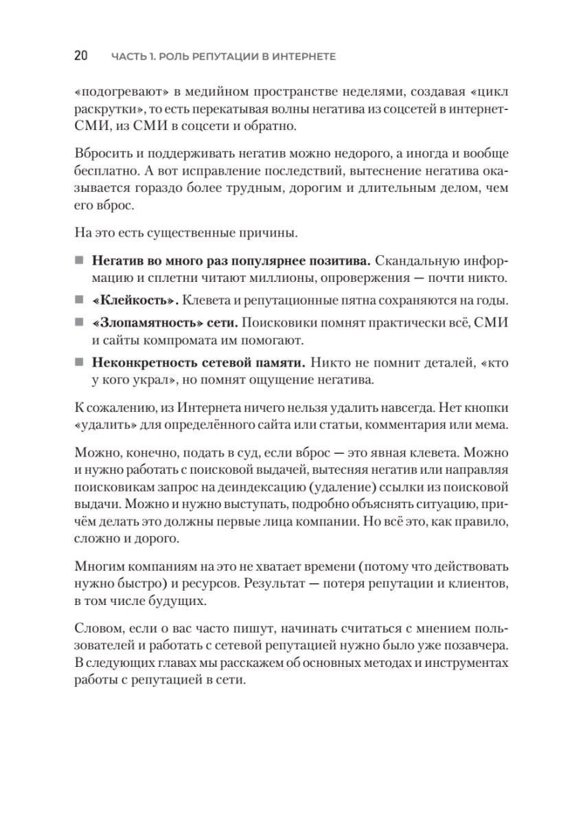 А законы эти существуют, они уже осмыслены и исчислены, ими можно пользоваться для продвижения бизнеса, управления репутацией, усиления влияния и роста продаж. Управление репутацией не магия, не квантовая физика, это эффективное ремесло. В книге описаны основные принципы, приёмы и секреты этого ремесла, так что она будет не только интересна читателю, но и принесёт практическую пользу.